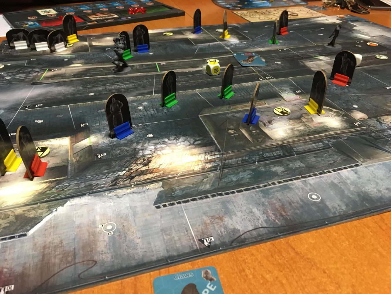 On a eu beaucoup de mal à voir quoi faire en début de partie. Il y a énormément de possibilités, un objectif à atteindre et pleins de méchants partout qui nous empêchent de bouger facilement et de faire ce qu’on veut. Résultats, nos premiers tours ont été très longs, on discutait beaucoup et le vilain attendait énormément (ce qui n'est pas cool pour lui). De plus, on a très vite mis la main sur une super arme qui a erradiqué pas mal de méchants qui trainaient dans les rues et on avait l’impression d’être un rouleau compresseur et que le vilain ne s’en sortira jamais... et pourtant... il a gagné.