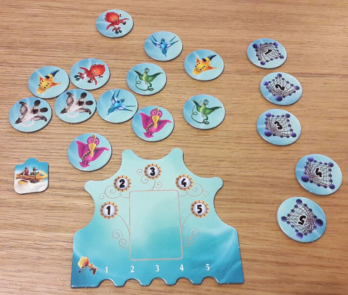La résolution de fin de partie pour savoir si on a gagné est pour moi juste inutile et incompréhensible : il faut comparer la pile des jetons oiseaux sauvés de ceux capturés par les braconniers : malin, mais comme il y a des jetons fin normaux et épais ce n'est que hasard... dommage car tout simplement compter les pions ou avoir tous les jetons de même épaisseur aurait été tellement plus intuitif... On peut perdre en ayant plus d'oiseaux que ceux capturés par les braconniers... Principe difficilement compréhensible pour mes petits joueurs.