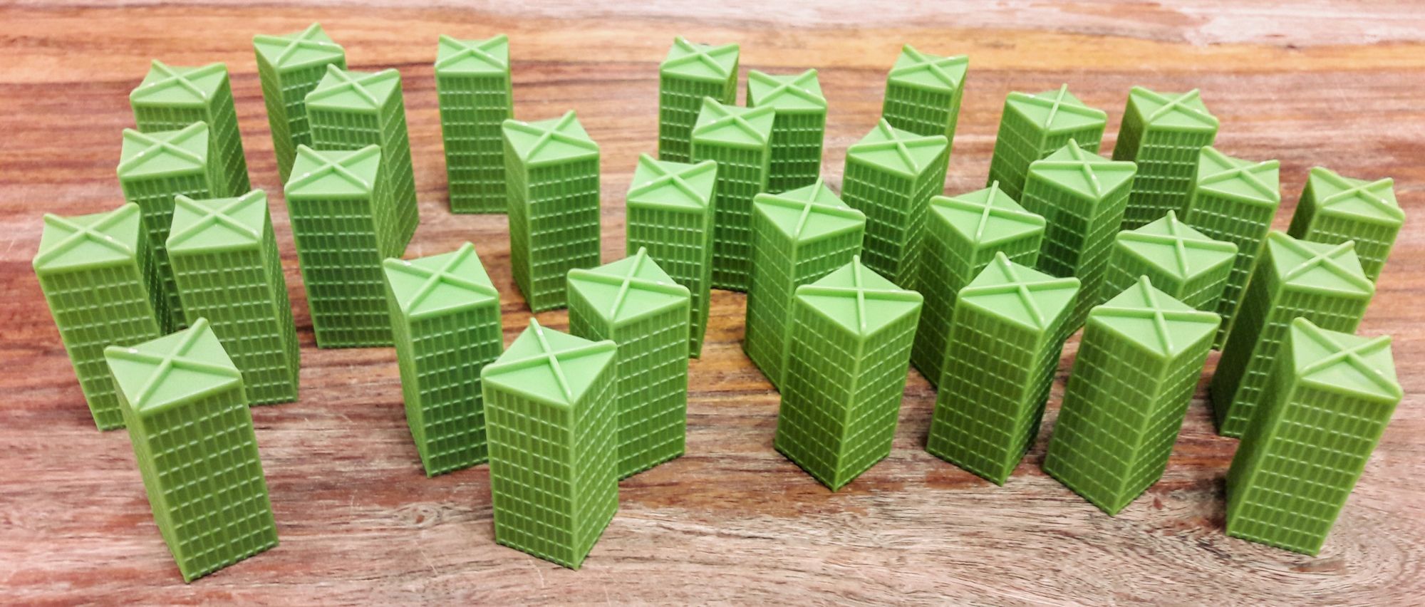 Attention ici rien à voir avec Sim City, on est dans un jeu de pose de tuiles carrées (style Carcassonne) mais avec un petit twist 3D de connection de bâtiments via des passerelles où chacun sera un architecte devant réaliser le meilleur projet d'urbanisme.