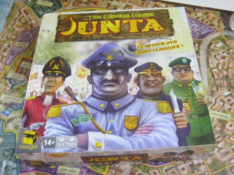 Junta cru 2016, n’est pas un nouveau jeu, mais une réédition. Étant donné qu’il y a des chances que vous connaissiez le jeu et qu’il est assez aisé de trouver des avis sur celui-ci, j’ai décidé de vous présenter plutôt le matériel que l’on trouve dans cette boite, le principe du jeu n’ayant pas changé. C’est parti !