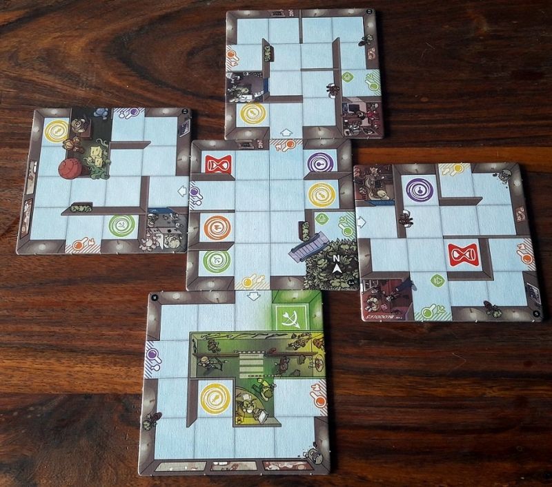 Magic Maze propose un matériel simple mais superbement illustré pour les tuiles du plateau.