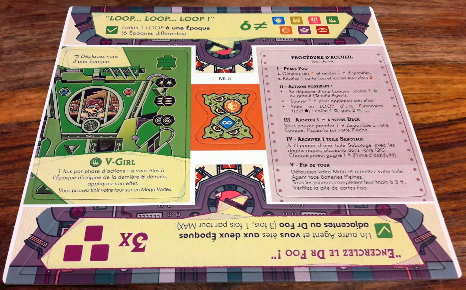 The LOOP propose des règles et un thème vraiment décalés et très fun, rien ne paraît serieux… sauf le jeu qui lui est bien réglé et pas vraiment drôle (sauf si on aime se faire maltraité par le Dr FOO).