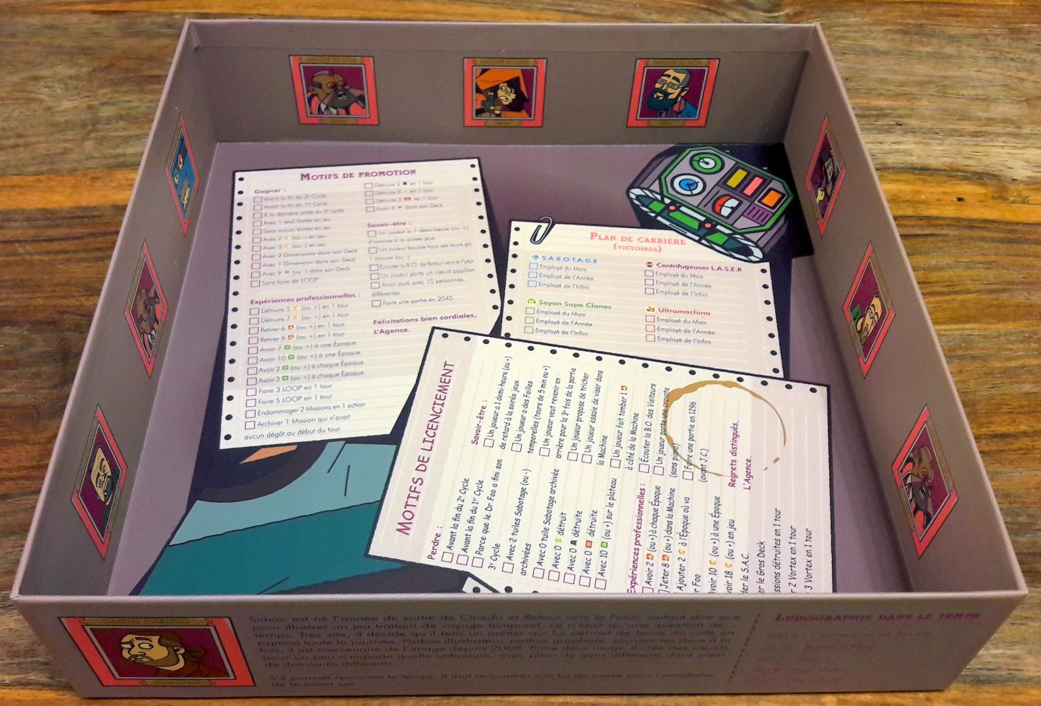 Pour gagner il faudra parvenir à faire 4 missions (2 seulement sont visibles à tout moment et il pourra s’agir de supprimer des clones , supprimer des failles, avoir de l’énergie sous certaines conditions ou encore faire des LOOP, j’y reviens après...) et pour cela on jouera après la phase mal les actions des 3 cartes en main (déplacement, ajout d’énergie, déplacement de clones, et suppression de failles au programme) et en se déplaçant (1 gratuit puis en payant 1 énergie de notre époque). Dernière chose possible avant la fin de son tour faire une LOOP en utilisant une énergie (puis 2,3 si on veut le refaire) pour pouvoir redresser des cartes de sa main et ainsi pouvoir les rejouer (oui mais comme on remonte qu’une famille de cartes sur les 4 du jeu, c’est rare d’en remonter plus d'une… Une fois terminé son tour on pourra ajouter une carte de son époque (s’il y en a) à son deck. Et voilà c’est à peu prêt tout pour le mode de jeu de base : sabotage mais il en existe 3 autres encore plus compliqués…