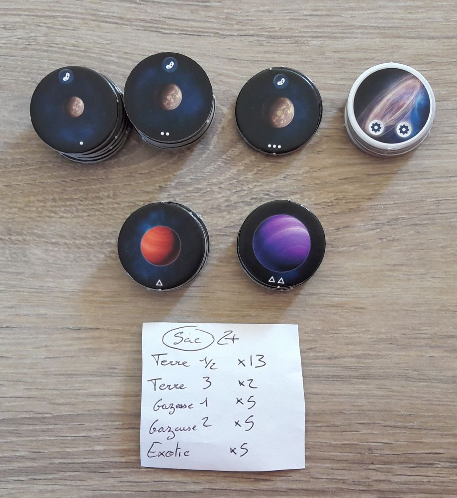 Pas de thermoformage, pas assez de sachets, les tuiles de la réserve qui ne se distinguent pas de celles prévues pour les parties à 2 joueurs et pour m'achever les angles des tuiles objectifs planétaires sont fragiles (si on ne les protège pas dans une petite boite elles ont tendance à se décoller).