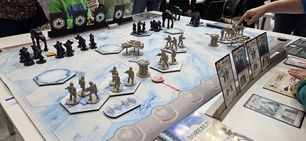 Pause du midi : on traverse quelques halls (!) et on tombe sur une très belle table de Star Wars la bataille de Hoth.