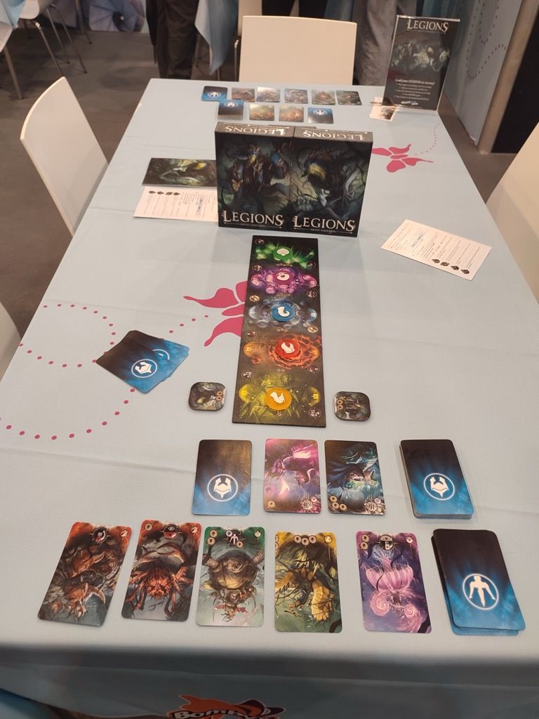 Passage chez Bombyx pour jeter un oeil sur la version définitive de Légions de Bruno Cathala, Charles Chevallier et Johannes Goupy après avoir essayé le proto il y a deux ans avec Cyril.