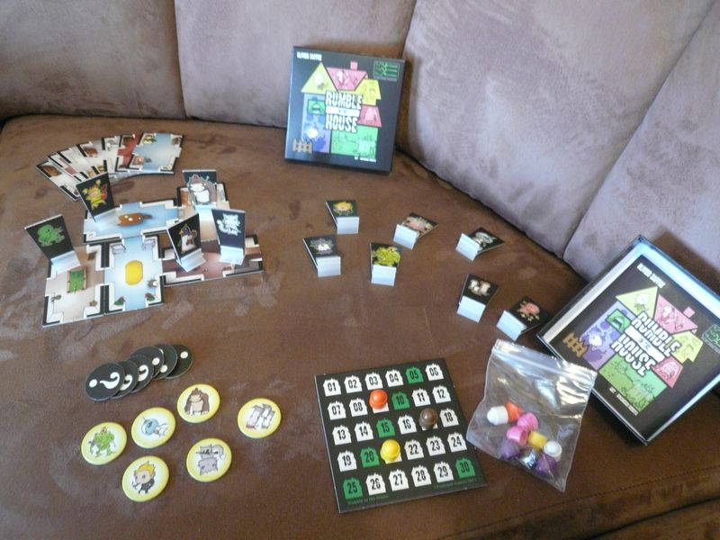 Ce qui surprend dès l'ouverture de la boîte c'est la quantité de matériel qu'elle contient ! Pas moins de 12 pièces, ainsi que 12 personnages cartonnés et leur socle, les jetons associés, une piste de score et les pions qui vont avec !!! On ne peut qu'être admiratif pour le contenu, le bon carton, et l'optimisation réalisée.