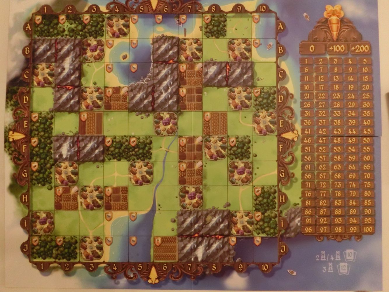 Le compteur de score est sur le même plateau que le plateau de jeu. Les points sont ici comptés en carottes dorées.