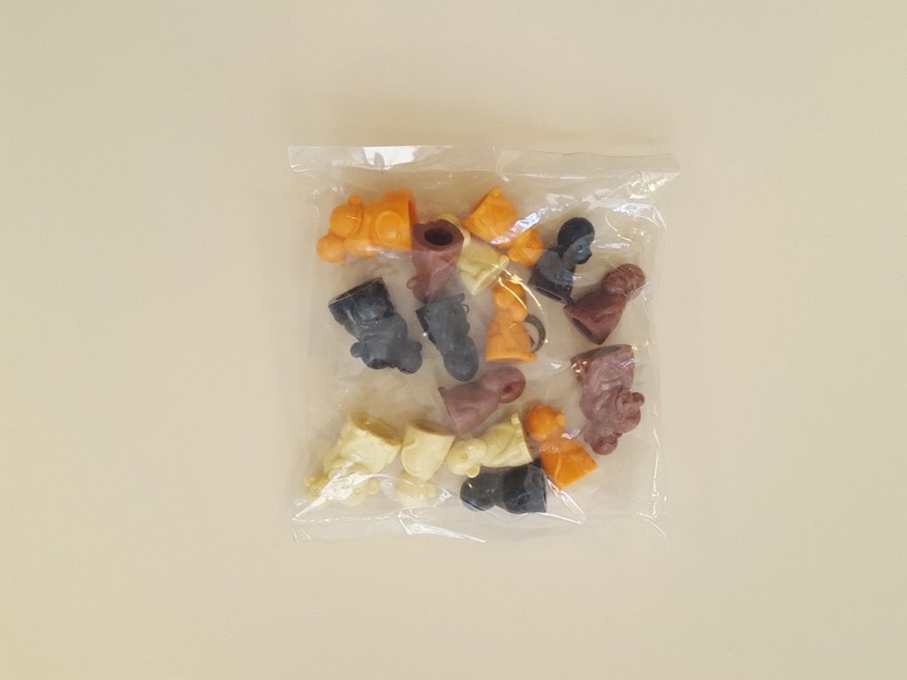 Et pourtant à l'ouverture, on est agréablement surpris par le contenu : un plateau imposant et très coloré en carton bien épais (5mm), des cartes et des tuiles épaisses qui tiennent bien dans les petites mains, des singes qui ne glissent pas toutes les secondes sur les fenêtres plastiques, de belles couleurs qui illustrent le plateau et même un insert en carton permettant de bloquer le matériel dans la boite. Je dois avouer que mes petits élèves testeurs ont tout de suite été conquis (Whaooua...) avant même de commencer une partie.