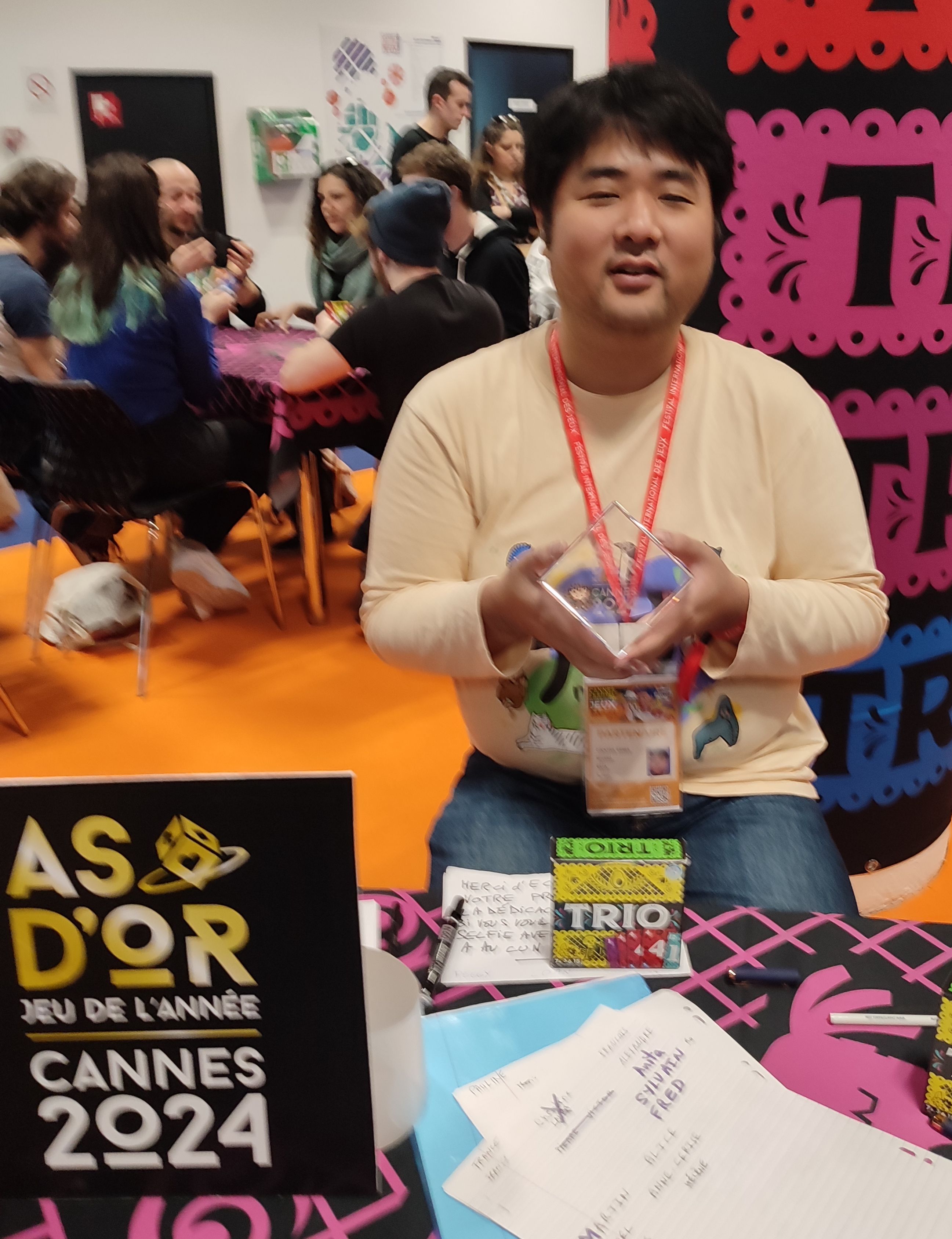 De retour à l'étage (!) chez Cocktail Games pour féliciter et prendre une photo de Kaya Miyano l'auteur de Trio avec son As d'Or !!!