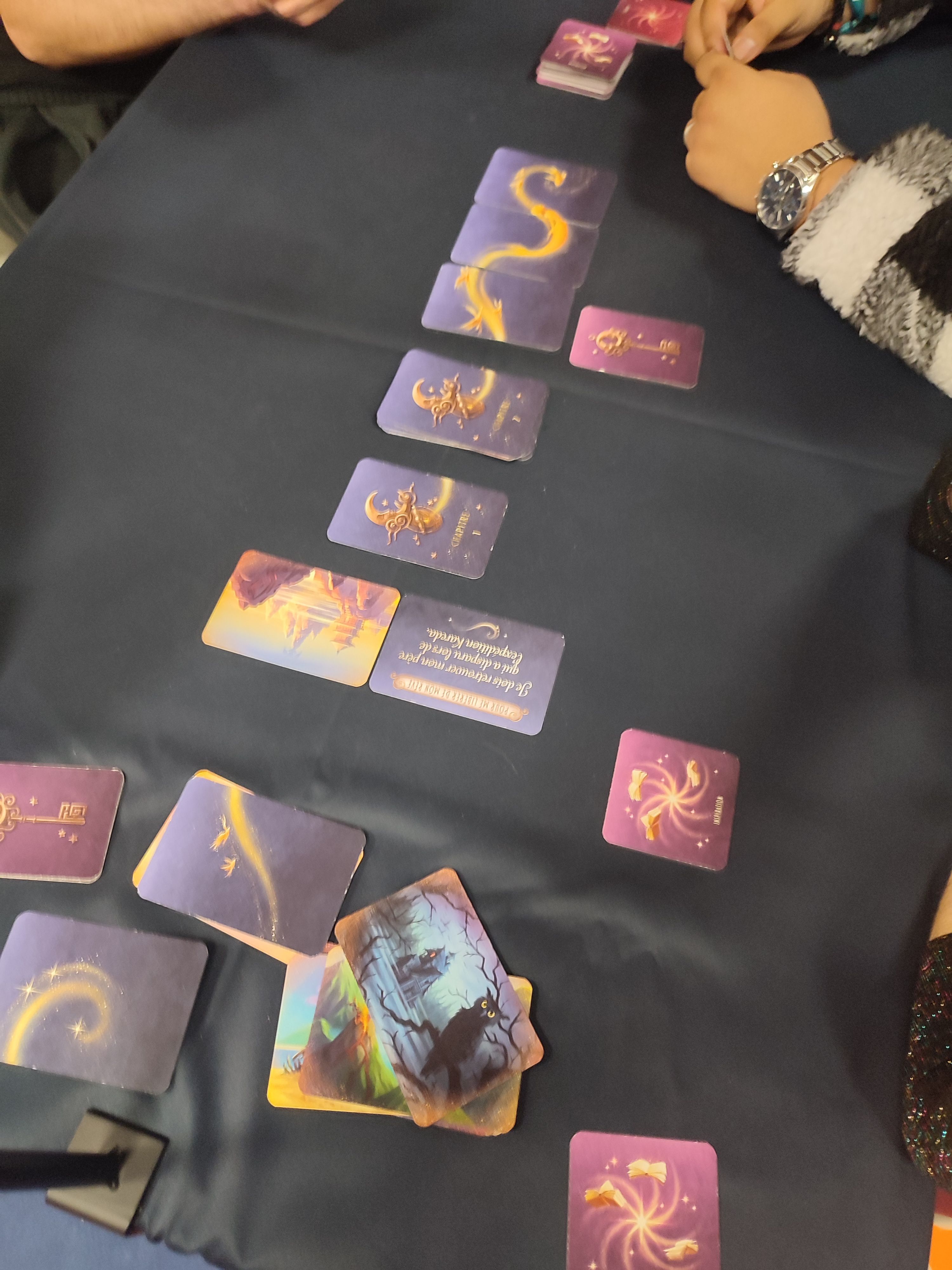 J'ai la chance de partager cette partie avec Amandine Girard-Koni, illustratrice pour Lorcana, qui avait été attirée par les illustrations du jeu de Martin Mottet (The Magnificent, Revive, Evenfall...) et une autre personne de chez Ravensburger.