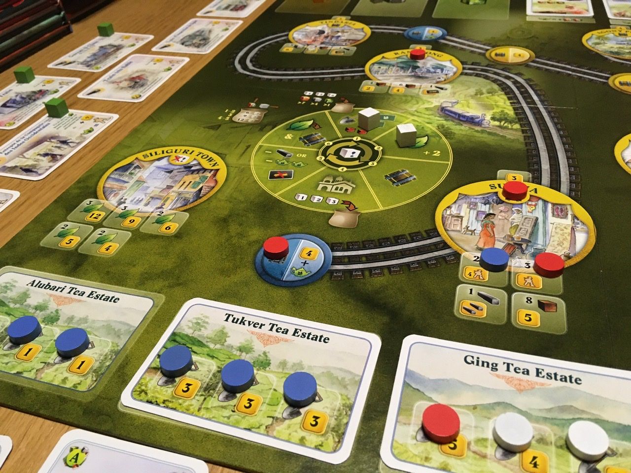 Alubari : A nice cup of tea est un jeu de Tony Boydell, l'auteur de Snowdonia. D'ailleurs, il s'agit d'une réimplentation de ce dernier avec un nouveau plateau et quelques nouveautés au niveau des règles comme la récolte de feuilles de thé.