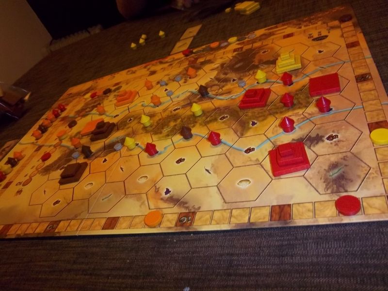 Naturellement, n’ayant pas ouvert la boîte depuis au moins 2 ans, j’ai oublié une « petite » règle (les points à chaque tour sur les étages de Ziggourat), mais cet oubli fut rapidement réparé grâce à la sagacité de monsieur Thomas.