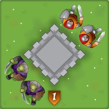 Quand toutes les tuiles entourant une tour ont été jouées, on vérifie les majorités pour chacun des 4 coins de la tour. Les égalités se départagent selon l'allégeance de base de la tour.