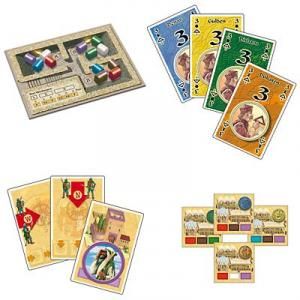 - Les bâtisseurs propose 16 cartes monnaies à ajouter à celles du jeu de base. De valeur "3", ces dernières peuvent être utilisées comme des cartes de base, mais peuvent aussi être défaussées lors de son tour pour avoir droit à une action "remoduler son Alhambra" bonus.