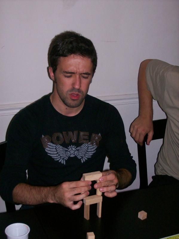 Après une petite partie de "Mamma Mia" à trois suivie de trois parties de "Unanimo" pendant la pose repas (je gagne la première manche avec 75pts mais mes points ressemblent à une peau de chagrin et je n'en totalise que 49 lors de la troisième partie) nous décidons de sortir "Les rondins des bois" dont le nom semble tout de même une allusion à un fameux groupe de comédiens...
