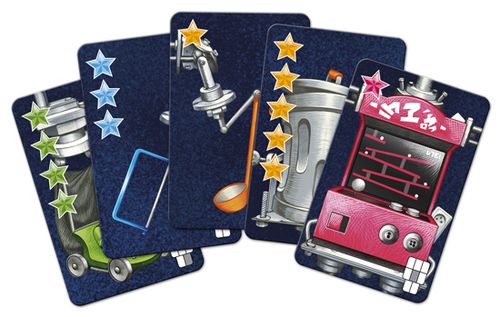 Chaque carte, en plus de représenter une partie du robot, comporte un certain nombre d'étoiles (1 à 5) d'une couleur (en tout il y a 4 couleurs différentes).