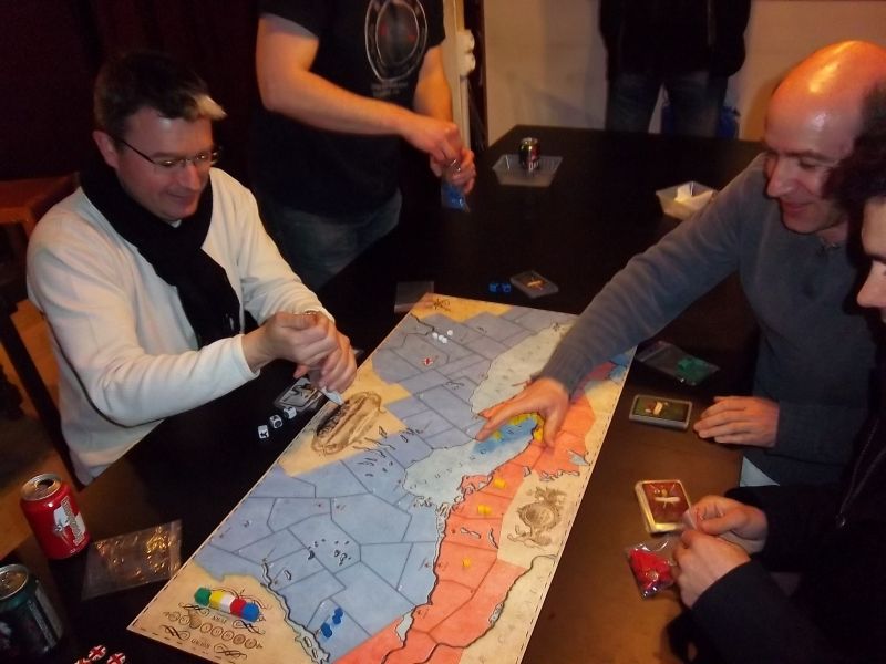 Mais la tension montait, car nous avions joué une carte Trève, et nos adversaires se doutaient que nous avions les deux autres en main en raisons de nos mines de conspirateurs. Le tout était de les jouer au bon moment.