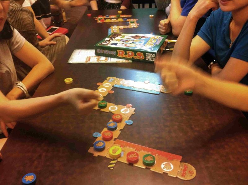 A son tour de jeu, on place un de ses marqueurs sur la piste de départ. Puis on regarde le symbole du marqueur (Pierre, feuille ou ciseaux) et celui de la case où il se trouve.