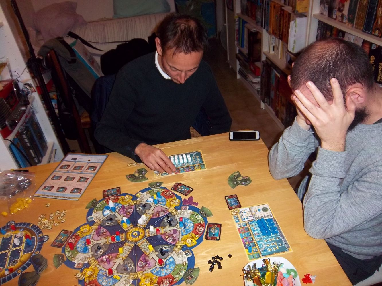 Plusieurs parties d'Aquasphère, dont celle-ci. Un jeu de S. Un Feld un peu trop méconnu, par forcemment bien servi par un matériel au design brouillon (mais les meeples sont très sympa). Au final, un jeu très intéressant. Pour les amateurs de cet auteur...