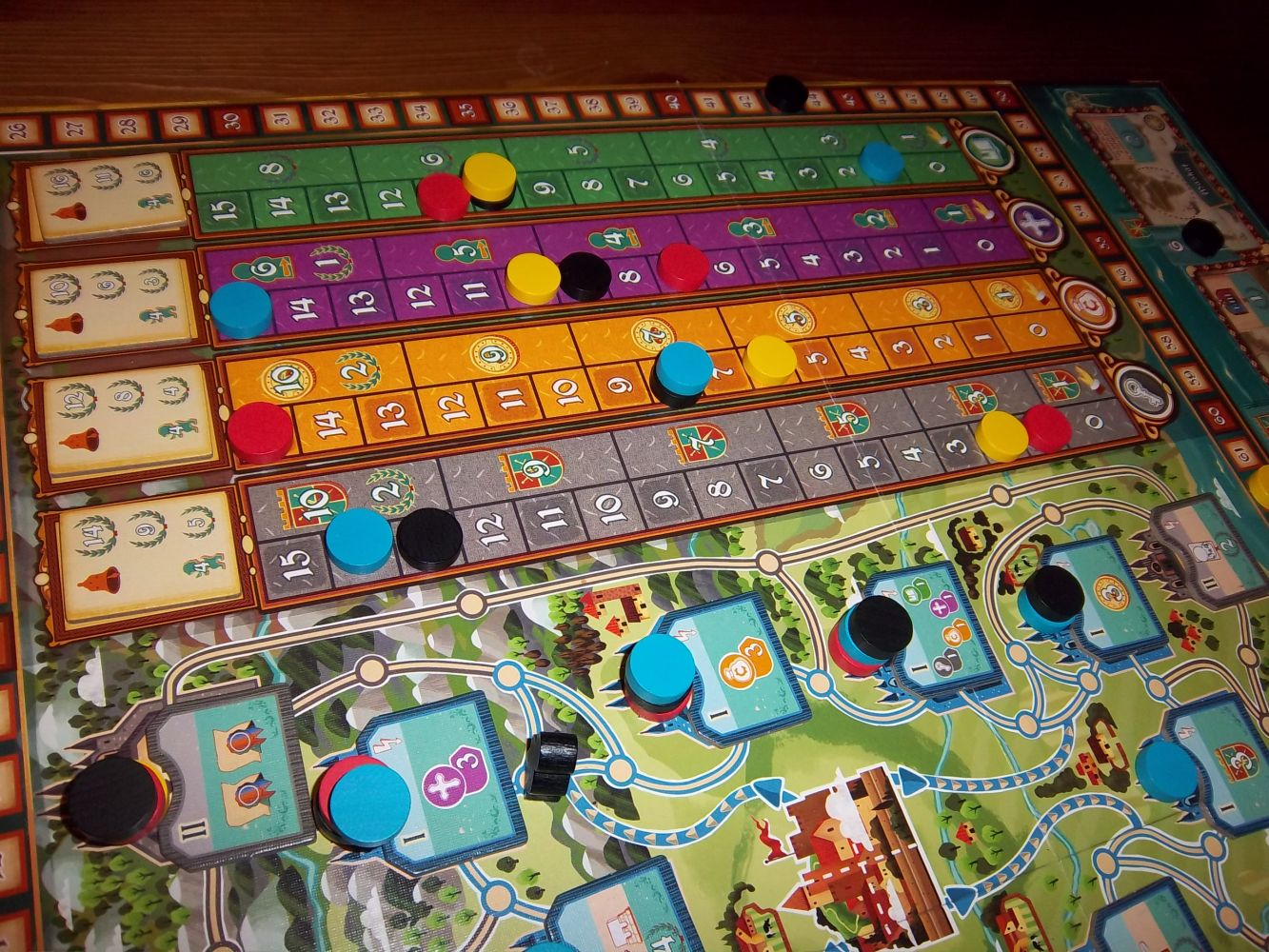 Un joueur qui a joué à Coimbra (pour l'acheter dans la foulée d'ailleurs) est venu jouer chez moi hier soir (on a fait un Forum trajanum à 4) et il m'a appris un truc : en fait, sans le savoir, j'ai joué sur deux pistes qui vont ensembles, à savoir la piste de l'Or et celle des points de victoire. En effet, si tu examines les coûts des cartes, les cartes vertes demandent essentiellement de l'Or pour être acquises... seules deux demandent des Gardes. J'ai pas regardé, mais je pense que ce doit être quelque chose d'équivalent entre la piste des gardes (piste grise) par rapport au cartes de la piste du pélerinage (piste violette). La répartition des cartes et de leurs coûts... après 4 parties, j'avais tout simplement pas pensé à examiner ça..