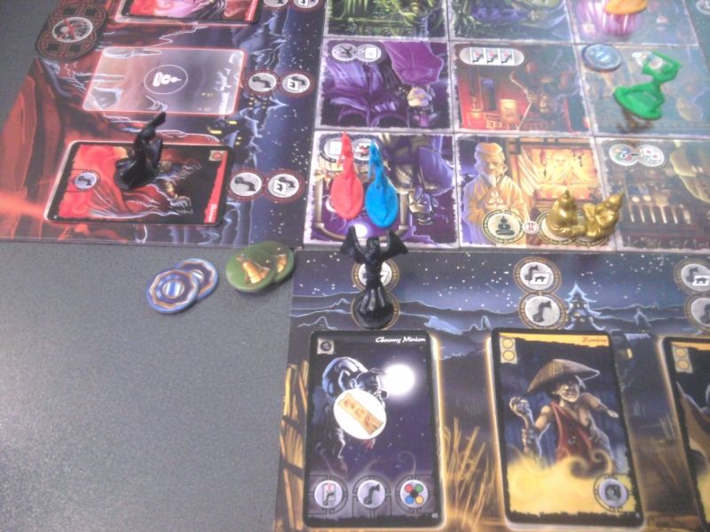 Et ben, quelle honte de perdre ainsi en mode normal. Je me souvenais qu'on ne maîtrisait pas trop mal le jeu, en fait nous nous surestimions, ou alors nous avons clairement perdu en compétence. Je pensais que nous n'étions pas trop mal, l'utilisation des Bouddhas était efficace, celui du Mantra d'affaiblissement aussi. Mais nous avons négligé les jetons Tao et tout doucement, la situation s'est détériorée. Nous étions dans le ravin lorsque Wu-Feng est sorti, et nous y sommes resté. N'empêche que j'ai beaucoup aimé rejouer à ce jeu. Il est suffisamment imprévisible pour qu'une mécanique donnée ne marche pas à tous les coups, même sans être à une difficulté supérieure. Ensuite l'ambiance autour de la table était bien sympa, tout le monde participait, il n'y avait pas vraiment de leader qui dictait aux autres ce qu'ils devaient faire.