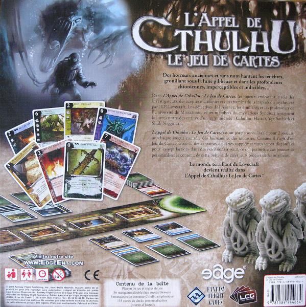 L'Appel de Cthulhu : Le Jeu de Cartes Evolutif est un jeu personnalisable pour 2 joueurs, où chaque joueur contrôle des humains et des monstres. Comme il s'agit d'un Jeu de Cartes Évolutif, des centaines de cartes supplémentaires seront disponibles pour les sept factions dans des extensions à venir, ce qui permettra aux joueurs de personnaliser le contenu de cette boîte et de créer leurs propres decks originaux. Cette boite de base contient 165 cartes et divers marqueurs qui permettront aux joueurs de pouvoir jouer immédiatement.