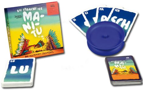 Le chef retourne la carte supérieure de la pioche et la montre au joueur assis à sa gauche qui lit la syllabe à haute voix. Le chef de Tribu place alors cette carte dans le porte carte de manière à ce qu'il soit le seul dorénavant à pouvoir la voir. Puis il pioche une nouvelle carte, le joueur suivant doit alors répéter la première syllabe ( cachée dans le porte carte) et y ajouter immédiatement la nouvelle... le jeu continue de cette façon et le mot du grand Manitu devient de plus en plus compliqué à retenir ! Ex : Ho-Ti-Ma-Sch-Ku ....Une longue chaîne de syllabes se forme, favorisant la lecture, le langage et la mémoire à court terme, de façon ludique et originale ! Si le chef de Tribu relève une erreur il crie "stop" et le joueur est éliminé !