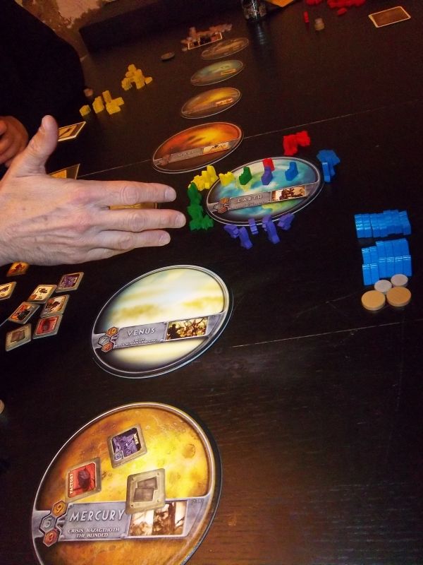 ça y est le week end jeux est passé, avec comme d'habitude beaucoup de Wallace en ce qui me concerne: Liberté, Byzantium, Mythotopia, A study in Emerald (que je ne connaissais pas) et... ...Onward to Venus où j'ai essayé d'augmenter le risque (et donc la crainte) des crises.