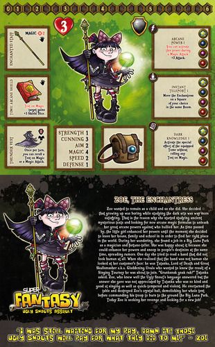 "Super Fantasy inclut des pièces double-face pour concevoir son plateau de jeu de manière modulaire, permettant la création d'un nombre incroyable de scénarios en combinant ces pièces ensembles, 6 puissants héros et 3 capacités uniques pour chacun d'eux, permettant aux joueurs de se lancer dans un monde dans lequel tout peut arriver !" (Texte Editeur)