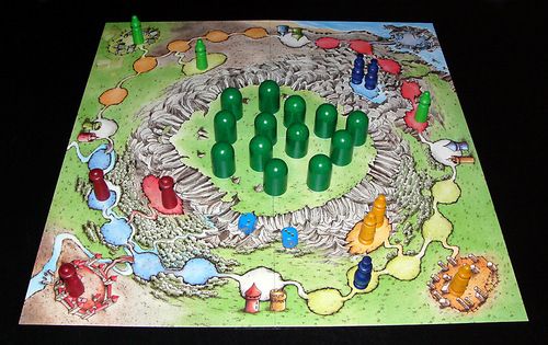 L'idée est simple : un seul lancé de dés pour tous les joueurs et une avancée des pions conditionnée par la recherche du nombre de tchik tchik tchik dans les maracas rempli avec un nombre de pierres le plus proche possible du lancé de dé.