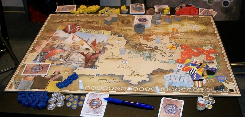 Chaque joueur contrôle un ménage patricien en lice pour le pouvoir contre d'autres familles influentes. Pour gagner pouvoir et fortune ( autrement dit des points la victoire ), les familles étendent leur influence en dehors de la ville en envoyant des représentants aux marchés étrangers. Comme leur autorité se propage, la puissance de Venise augmente en conséquence, et les villes et les ports éloignés tombent sous la domination de la Sérénissime. En attendant, les joueurs s'affrontent à l'intérieur de la ville pour le titre convoité de Doges -le chef du gouvernement- , dépensant les ressources et les Ducati ( argent) pour gagner en popularité.